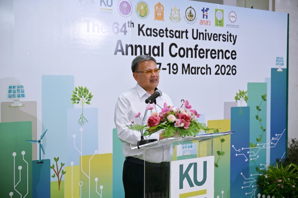 ดร.ดำรงค์ ศรีพระราม รักษาการแทนอธิการบดีมหาวิทยาลัยเกษตรศาสตร์ให้เกียรติเป็นประธานเปิดงานการประชุมทางวิชาการครั้งที่64 ภายใต้แนวคิด“บูรณาการนวัตกรรมและสังคม: ก้าวสู่อนาคตที่ชาญฉลาดและยั่งยืน” (Bridging Innovation and Society: Toward a Smart and Sustainable Future) วันที่17 มีนาคม2569 ณห้องประชุมสุธรรมอารีกุลอาคารสารนิเทศ50 ปีมหาวิทยาลัยเกษตรศาสตร์