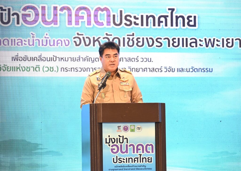 นายชูชีพ พงษ์ไชย ผู้ว่าราชการจังหวัดเชียงราย กล่าวว่า จ.เชียงรายและพะเยามีศักยภาพโดดเด่นทั้งด้านทรัพยากรธรรมชาติ การเกษตร และการท่องเที่ยว อย่างไรก็ตาม พื้นที่ยังคงเผชิญความท้าทายจากปัญหาฝุ่นละอองขนาดเล็ก PM2.5 และการบริหารจัดการทรัพยากรน้ำ การนำองค์ความรู้ด้านงานวิจัย เทคโนโลยี และนวัตกรรมเข้ามาประยุกต์ใช้ในพื้นที่ จึงถือเป็นโอกาสสำคัญในการยกระดับคุณภาพชีวิตของประชาชน ควบคู่กับการพัฒนาเศรษฐกิจในระดับพื้นที่ให้เติบโตอย่างเป็นรูปธรรม