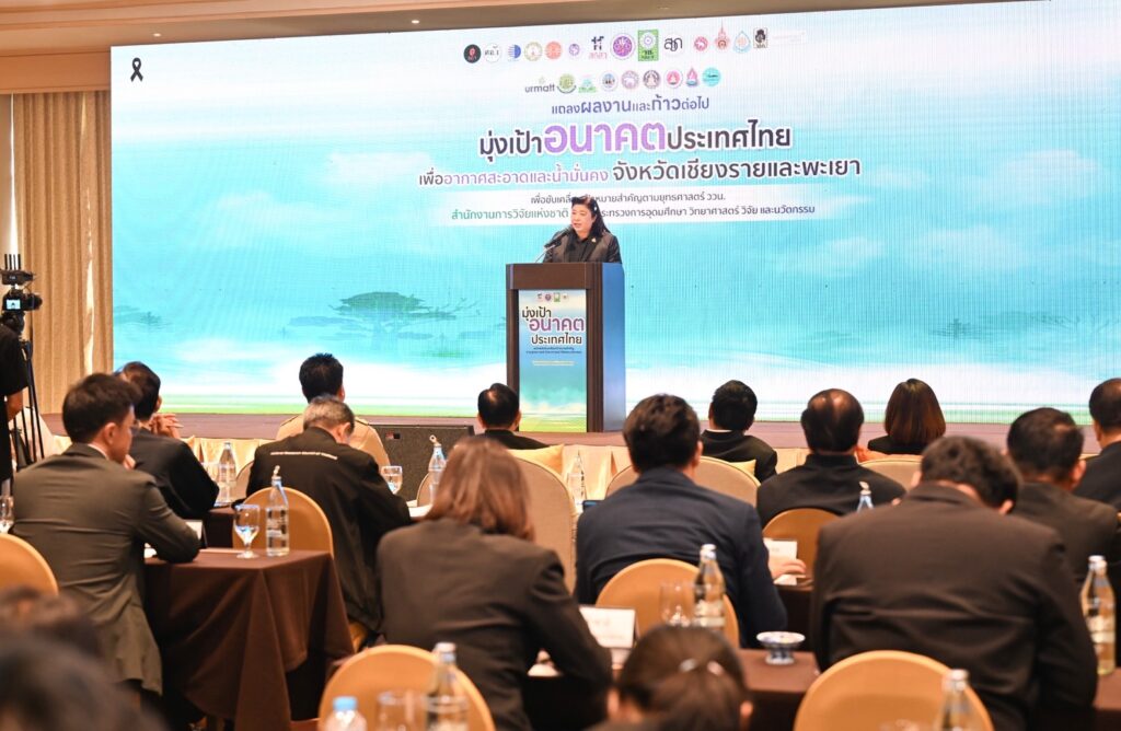 ดร.วิภารัตน์ ดีอ่อง ผู้อำนวยการสำนักงานการวิจัยแห่งชาติ กล่าวว่า วช. ขับเคลื่อน “มุ่งเป้าอนาคตประเทศไทยเพื่ออากาศสะอาด น้ำมั่นคง” ผ่านการนำงานวิจัยและนวัตกรรมไปใช้แก้ไขปัญหาในพื้นที่อย่างเป็นรูปธรรม โดยจังหวัดเชียงรายและพะเยาเป็นพื้นที่นำร่องสำคัญที่สะท้อนความสำเร็จของการบูรณาการความร่วมมือทุกภาคส่วน จากการดำเนินงานที่ผ่านมา วช. ได้สนับสนุนงานวิจัยหลากหลายด้าน ตั้งแต่ด้านการพัฒนานวัตกรรมข้อมูลเพื่อการตัดสินใจ ด้านการลดการเผาในภาคเกษตร ด้านการจัดการไฟป่า จนถึงด้านความร่วมมือข้ามพรมแดน ขณะเดียวกัน ได้ผลักดันการบริหารจัดการน้ำอย่างมั่นคง ภายใต้แนวคิด “ไม่ท่วม ไม่แล้ง” ผ่านการใช้เทคโนโลยีและการมีส่วนร่วมของชุมชน ทำให้ประชาชนสามารถเข้าถึงน้ำอย่างมั่นคงและลดความเสี่ยงจากภัยพิบัติ ผลลัพธ์ที่เกิดขึ้นไม่เพียงช่วยลดผลกระทบด้านสิ่งแวดล้อม แต่ยังสร้างรายได้ เพิ่มโอกาสทางเศรษฐกิจ และเสริมความเข้มแข็งของชุมชนในพื้นที่ และในระยะต่อไป วช. จะมุ่งขยายผลนวัตกรรมไปยังพื้นที่อื่น พร้อมเชื่อมโยงความร่วมมือระหว่างภาครัฐ เอกชน สถาบันการศึกษา และชุมชน เพื่อสร้างระบบบริหารจัดการอากาศและน้ำอย่างยั่งยืน โดยเป้าหมายสำคัญคือการยกระดับคุณภาพชีวิตของประชาชน และขับเคลื่อนประเทศไทยสู่การมีอากาศสะอาด น้ำมั่นคง และการพัฒนาที่ยั่งยืน