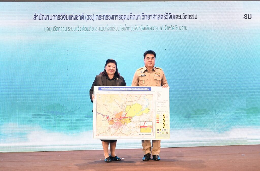 นอกจากนี้ วช. ได้มอบผลงานวิจัยและนวัตกรรมด้านการขับเคลื่อนการแก้ไขปัญหา PM2.5 และการบริหารจัดการน้ำมั่นคง โดยมี นายชูชีพ พงษ์ไชย ผู้ว่าราชการจังหวัดเชียงราย เป็นผู้รับมอบ โดยมุ่งให้เกิดการนำไปใช้ประโยชน์ในระดับพื้นที่อย่างเป็นรูปธรรม และขยายผลสู่การพัฒนาเพื่อสร้างอากาศสะอาด น้ำมั่นคง และยกระดับคุณภาพชีวิตของประชาชน