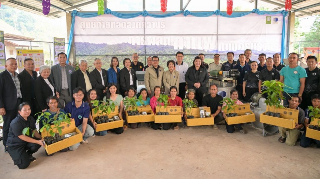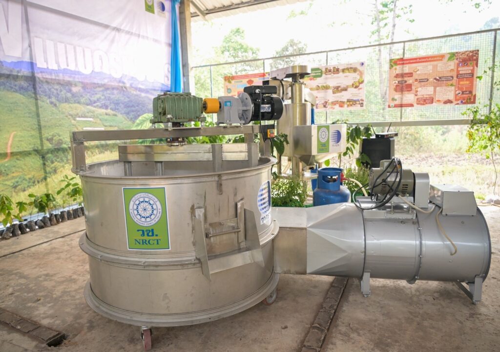 ถัดมาเป็นการส่งมอบนวัตกรรมเครื่องจักรสำคัญ ได้แก่ เครื่องสีกาแฟ เครื่องล้างเมือก และเครื่องอบเมล็ดกาแฟ ให้แก่หน่วยงานในพื้นที่ เพื่อสนับสนุนกระบวนการผลิตกาแฟตั้งแต่ต้นน้ำถึงปลายน้ำอย่างมีประสิทธิภาพ