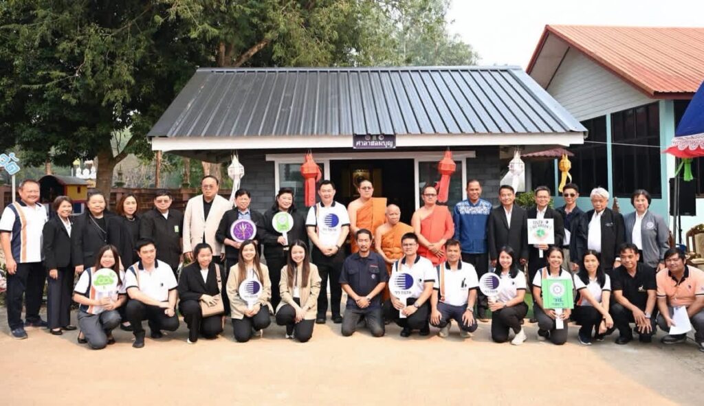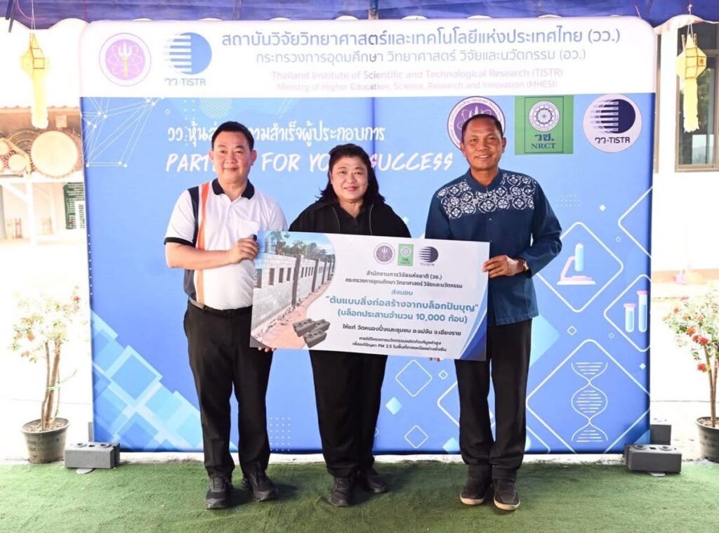นอกจากนี้ ภายในงานมีการส่งมอบ “ศาลาฮอมบุญ” ก่อสร้างจากบล็อกประสานไบโอชาร์ จากนวัตกรรมการผลิตไบโอชาร์ด้วยเทคโนโลยีการเผาไหม้แบบสกรูลำเลียงในแนวนอน โดยนำวัสดุเหลือใช้ทางการเกษตรมาต่อยอดเป็นวัสดุก่อสร้าง ซึ่งไม่เพียงช่วยเพิ่มมูลค่าให้กับเศษวัสดุทางการเกษตร แต่ยังเป็นอีกแนวทางหนึ่งในการลดการเผาในที่โล่ง อันเป็นสาเหตุสำคัญของปัญหาฝุ่น PM2.5 พร้อมทั้งสะท้อนการนำงานวิจัยไปใช้ประโยชน์จริงในชุมชน