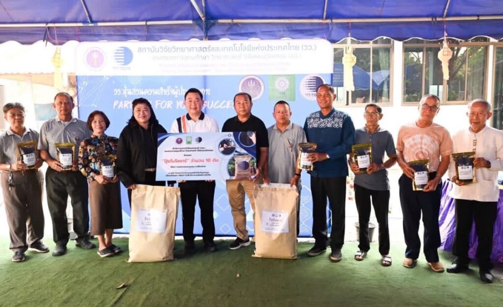 สถาบันวิจัยวิทยาศาสตร์และเทคโนโลยีแห่งประเทศไทย นำ สำนักงานการวิจัยแห่งชาติ(วช.) กระทรวงการอุดมศึกษา วิทยาศาสตร์ วิจัยและนวัตกรรม ร่วมส่งมอบนวัตกรรมและตรวจเยี่ยมพื้นที่ต้นแบบการจัดการเศษวัสดุทางการเกษตรเพื่อสร้างมูลค่าเพิ่ม ภายใต้โครงการนวัตกรรมผลิตภัณฑ์มูลค่าสูงเพื่อแก้ปัญหา PM2.5 ในพื้นที่ภาคเหนืออย่างยั่งยืน