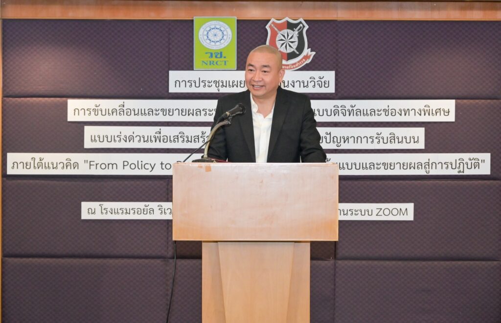 วันที่ 8 เมษายน 2569 สำนักงานการวิจัยแห่งชาติ (วช.) กระทรวงการอุดมศึกษา วิทยาศาสตร์ วิจัยและนวัตกรรม ร่วมกับ โรงเรียนนายร้อยตำรวจ จัดการประชุมเผยแพร่แผนงานวิจัยการขับเคลื่อนและขยายผลระบบบริการภาครัฐรูปแบบดิจิทัลและช่องทางพิเศษแบบเร่งด่วน เพื่อเสริมสร้างธรรมาภิบาลและแก้ไขปัญหาการรับสินบน ภายใต้แนวคิด “From Policy to Practice: ขับเคลื่อนนโยบายสู่ต้นแบบและขยายผลสู่การปฏิบัติ”