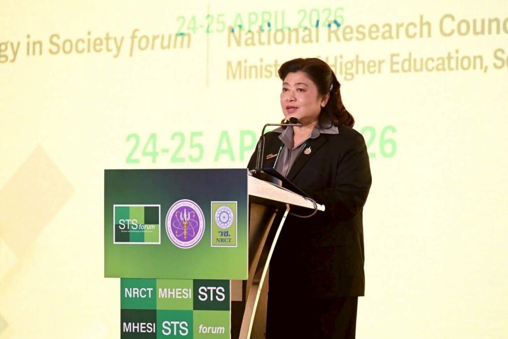 เมื่อวันที่ 24 เม.ย.69 ศ.ดร. ยศชนัน วงศ์สวัสดิ์ รองนายกรัฐมนตรีและ รมว.การอุดมศึกษา วิทยาศาสตร์ วิจัยและนวัตกรรม (อว.) เป็นประธานเปิดงานและกล่าวปาฐกถาพิเศษ หัวข้อ “ความท้าทายระดับโลกและแนวโน้มใหม่ด้านการวิจัยและการศึกษาในศตวรรษที่ 21” ในการประชุม STS forum Japan-Thailand Symposium 2026 ซึ่งจัดขึ้นเป็นครั้งแรกในประเทศไทย ภายใต้แนวคิด “The Great Convergence” ที่มุ่งเน้นการบูรณาการองค์ความรู้เพื่อสร้างผลกระทบเชิงบวกต่อโลกในทุกมิติ โดยสำนักงานการวิจัยแห่งชาติ(วช.) โดยมี ทพญ.ศรีญาดา ปาลิมาพันธ์ ที่ปรึกษา รมว.กระทรวง อว. นายฉัตริน จันทร์หอม เลขานุการ รมว.กระทรวง อว. ศ.ดร.ศุภชัย ปทุมนากุล ปลัดกระทรวง อว. ดร.วิภารัตน์ ดีอ่อง ผู้อำนวยการสำนักงานการวิจัยแห่งชาติ (วช.) ผู้บริหารกระทรวง อว. และพันธมิตรทั้งในและต่างประเทศ เข้าร่วมอย่างคับคั่ง ณ ห้องเวิลด์บอลรูม ชั้น 23โรงแรม Centara Grand & Bangkok Convention Centre at CentralWorld กรุงเทพมหานคร